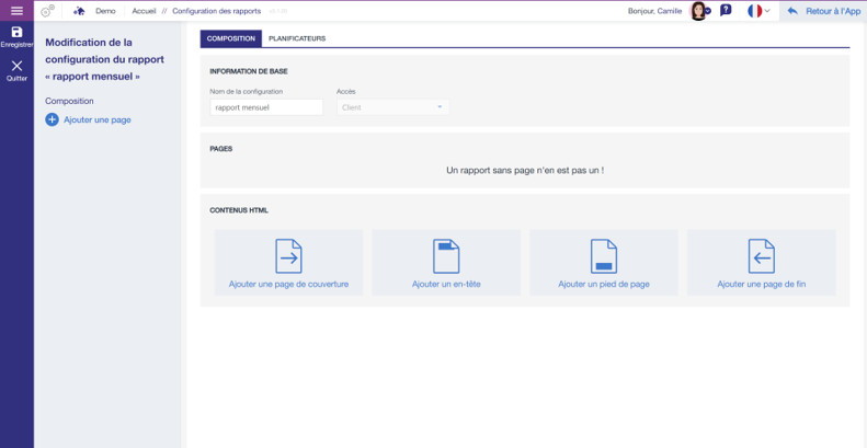 • Création de rapports générés automatiquement et périodiquement. Vous avez la possibilité d’intégrer un flux de validation directement dans vos rapports pour apporter commentaires, conseils et expertise à vos interlocuteurs.